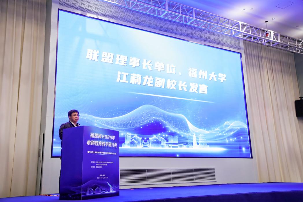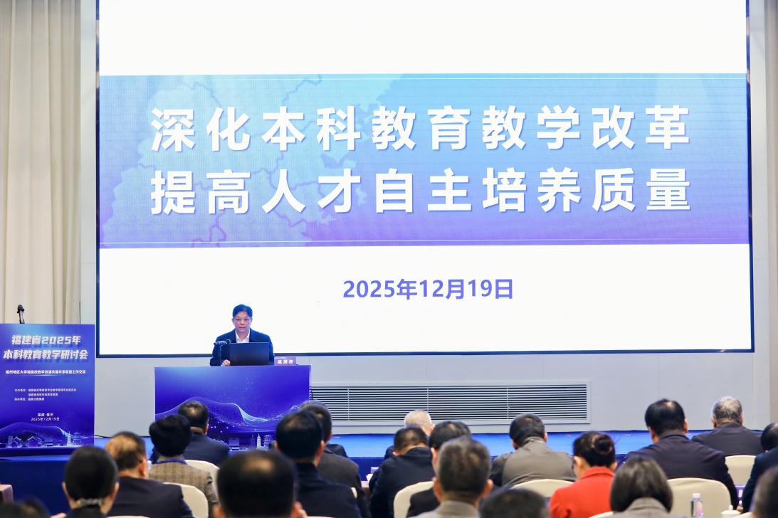 12月19日,由福建省高等教育学会教学管理专业委员会、福建省高校在线教育联盟主办的“福建省2025年本科教育教学研讨会”在福州旗山梅园酒店成功召开。省教育厅相关领导、省内本科高校主管教学副校长及教务处负责人、教学管理专业委员会理事等代表齐聚一堂,共商本科教育高质量发展大计。研讨会由省教育厅高教处负责人主持。