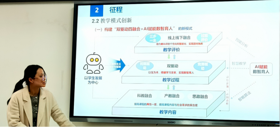刘莞玲老师介绍了自己参加高校教师教学创新大赛推动教学改革与创新的实践经验,其核心理念是坚持“以学生为中心”,探索“教学内容重构+教学方法创新”的“双驱动”育人模式。在“数据结构与算法分析”“系统综合实践”课程改革中,她通过引入真实产业案例和前沿技术,采用PBL(项目制学习)与导学练融合的教学方式,强化学生实践能力,并构建多元化综合评价体系,显著提升了教学效果。